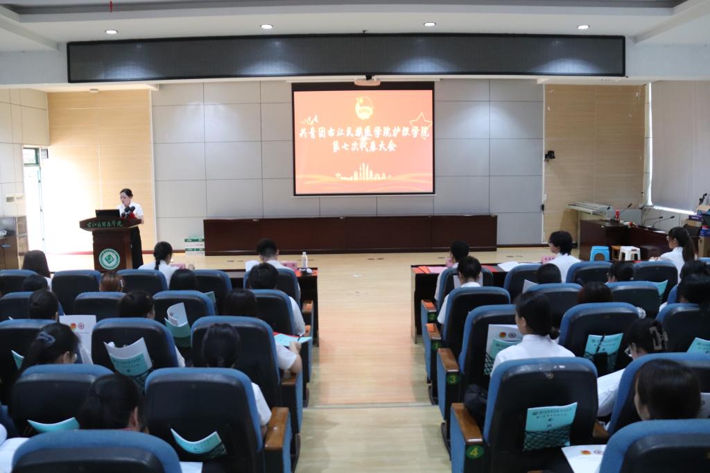 7月11日上午,共青团beat365英国官方网站护理学院第七次代表大会在百城校区5栋101学术报告厅召开。本次大会邀请了学校团委钟源老师,护理学院党委代表钟敏锐老师,护理学院分团委书记文志娟老师,分团委副书记黄祯雄老师以及各二级院系代表、护理学院各学生组织代表、各班级代表。