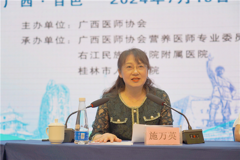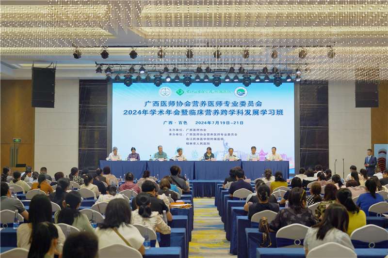 2024年7月19日至21日,由广西医师协会主办,广西医师协会营养医师专业委员会、beat365附属医院、桂林市人民医院承办的广西医师协会营养医师专业委员会2024年营养学术年会暨临床营养跨学科发展学习班在百色城顺利举办。中国医师协会营养医师专业委员会副主任委员、中国医科大学附属第一医院临床营养科主任施万英教授,广西医师协会赵劲民会长,广西医师协会营养医师专业委员会主任委员张勇胜,beat365附属医院副院长潘征,广西医科大学第一附属医院副书记赖铭裕致开幕词。广西医师协会营养医师专业委员会全体委员以及广西区内各级医疗机构100余名从事营养相关医务工作者参加会议。广西医科大学第一附属医院营养科项杰博士主持本次会议开幕式。