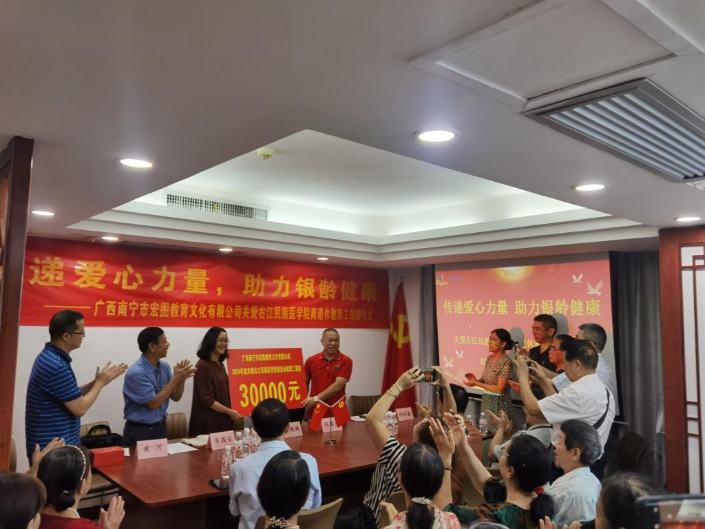 会上,周艳娥通报了学校重大工作及改革发展情况,并为老党员颁发“在党五十周年纪念章”;离退休党委领导汇报离退处现状及本年度工作;冯国东代表宏图公司向beat365离退休教职工捐赠3万元。据悉,该公司此前已两次向beat365贫困生和困难老同志捐款,激励贫困大学生努力学习,成才报国,为困难老同志雪中送炭,解除后顾之忧,还为beat365在南宁的离退休同志提供集体学习的活动场地和会务服务,以实际行动践行中华民族尊老爱幼的传统美德和企业担当。