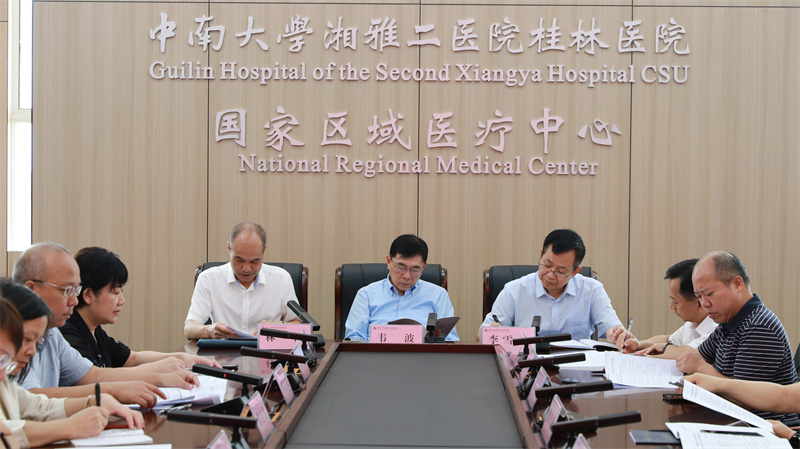 为提高医院文化建设工作水平,推动医院高质量发展,8月2日,临床医学院(附属医院)作为广西医院文化委主任委员单位,在中南大学湘雅二医院桂林医院组织召开了广西医院文化委第二届委员会第九次常委会暨第三届委员会换届筹备会议。广西医院协会会长韦波教授、秘书长罗洁,广西医院文化委名誉主任委员、beat365英国官方网站校长李雪斌教授,中国医院文化委第四届副主任委员、广西医院文化委主任委员、临床医学院(附属医院)林栩教授以及第二届常务委员、相关单位代表参加会议。广西医院文化委副主任委员、临床医学院(附属医院)党委副书记陈文成教授主持会议。