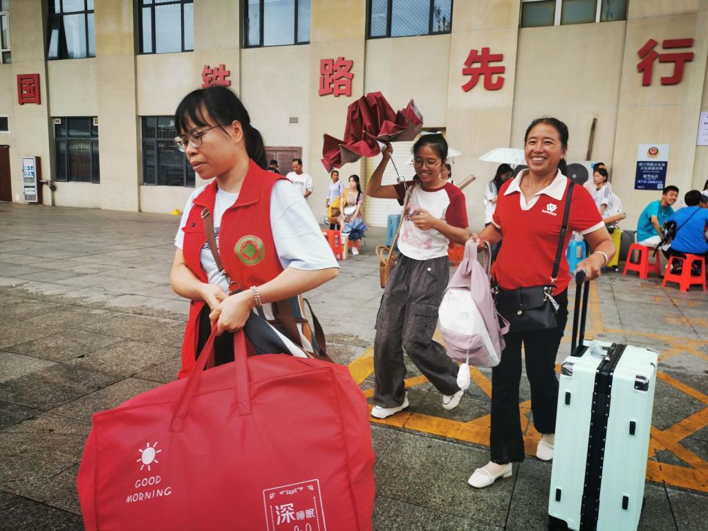 教师志愿者热情接待新生