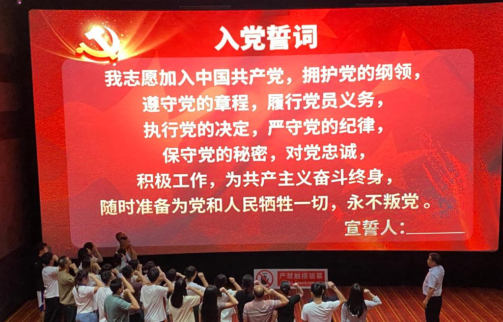 观影前,药学院党委书记陈秉朴带领党员同志重温入党誓词,希望每一位党员同志都能时刻铭记党员的初心和使命,坚定信念,始终保持共产党员的先进性和纯洁性。
