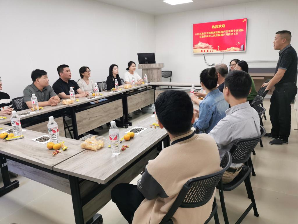 双方在桂林市人民医院超声科党支部示教室举行座谈交流会。会上,桂林市人民医院超声科高双同志首先介绍了桂林市人民医院超声科临床教学科研情况。他指出,通过支部联学共建的形式,推动党建与业务深度融合的交流学习,助力双方以高质量党建引领高质量发展。紧接着桂林市人民医院超声科党支部书记罗琼则介绍了支部的基本情况以及党建工作的特色做法,分享了党建引领业务发展的典型经验。随后,桂林市人民医院超声科陆振林同志以PPT形式汇报了桂林市人民医院超声科的党建工作和教学业务情况,从专业学科建设和发展角度切入,分享了如何对实习生、住培生进行规范化管理及教学,提升人才培养质量。