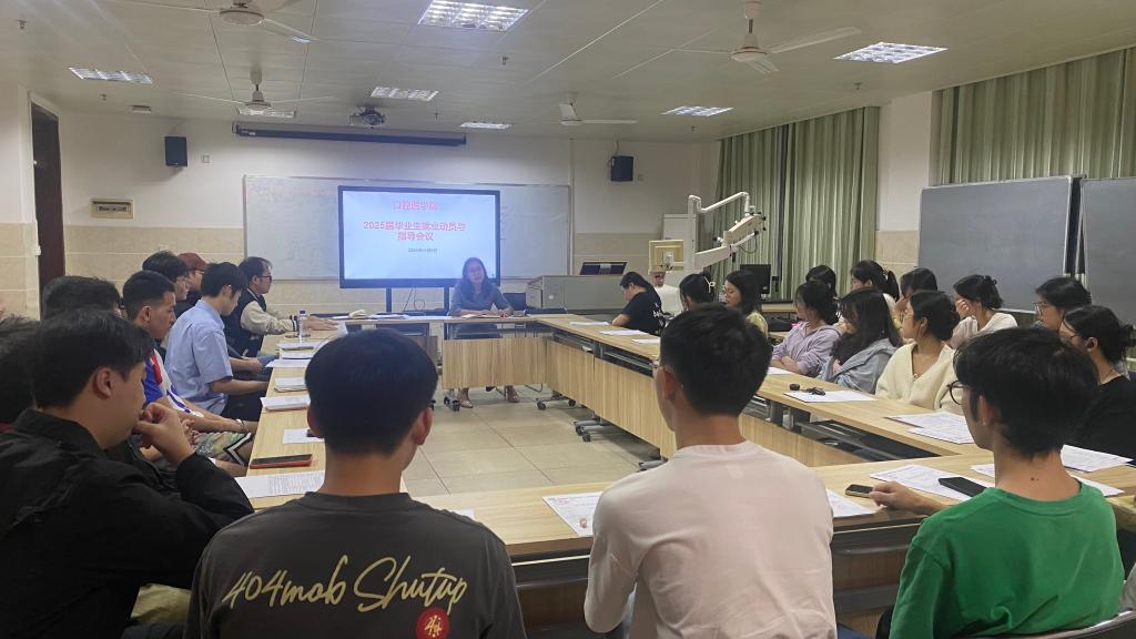 为统筹推进毕业生就业工作,做实做细就业指导服务,促进毕业生高质量充分就业,11月5日晚,口腔医学院2025届毕业生就业动员与指导会在7栋904教室举行。学院党委书记廖明华、学生科科长陶肖云出席,全体2025届口腔医学专业本科毕业生参加会议。