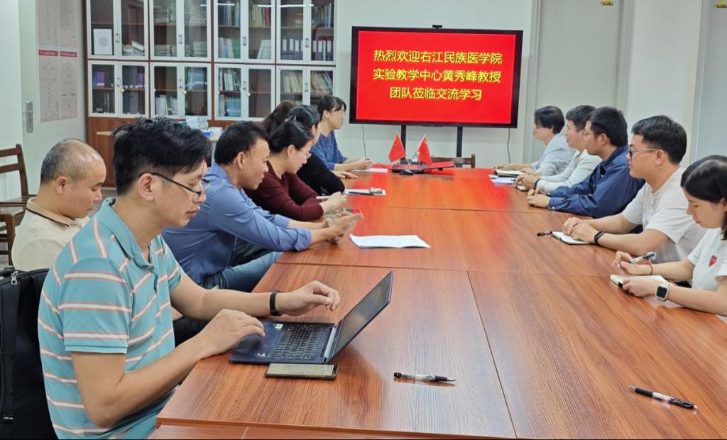 广西医科大学基础医学院院长罗彬热情接待了黄秀峰一行,随后召开座谈会。人体解剖学教研室邓琼英主任、邓祥发副主任、任丹副主任、实验室龚健古主任,人体解剖学党支部磨洁琳书记、玉洪荣副书记等参加座谈交流会,会议由邓琼英主持。