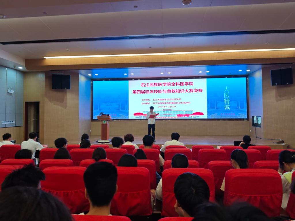 为推动学院形成“以赛促教、以赛促学、以学促干”的良好氛围,践行全科医学院“五至”精神,培养“勤勉好学,术业求精”的“至精”人才。11月15日下午,由全科医学院主办,右医附属医院全科医学科协办的第四届临床技能与急救知识大赛决赛在国际会议中心举行。活动邀请到右医附属医院全科医学科老师、校急救协会同学担任评委。学院领导班子及部分教师代表出席活动,全体在校同学到场观摩学习。