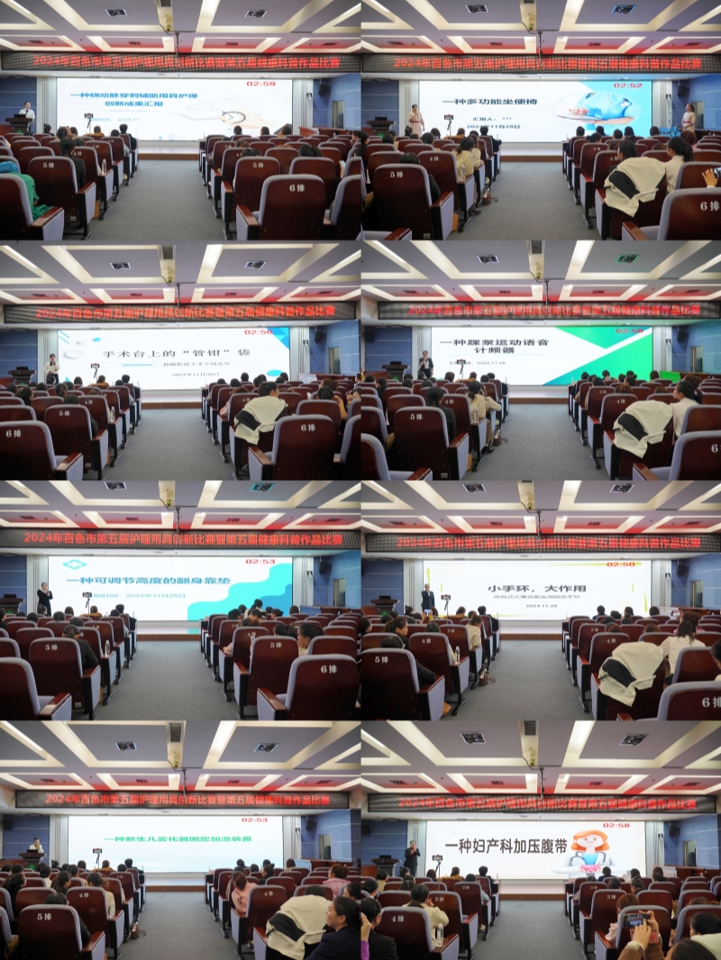 开幕式结束后,比赛正式开始。其中,2024年第五届百色市护理用具创新、健康科普作品比赛活动分别在临床医学院(附属医院)总院区外科五楼多功能厅、大教室举行;2024年百色市第一届优秀人文护理案例展演比赛在百色市人民医院举行。
