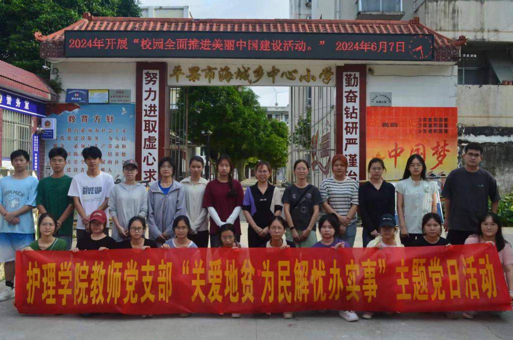 秉承“传承爱心,服务至上”的崇高理念,护理学院教师党支部师生踊跃投身于“世界早产儿日”“世界地贫日”“关爱地贫”等社会公益活动,用实际行动展现着新时代师生的责任与担当。2024年暑假,多名党员教师以身作则,带领学生深入百色市的各个村落,开展预防艾滋病、重型地贫儿出生、清洁乡村等一系列丰富多彩的“三下乡”暑期社会实践活动,真正做到用人文照亮护理,让护理富有温度和生命力。2年来党支部共为群众办好事6次,开展科普知识宣传2次,开展惠民服务4次,赢得了社会各界的广泛赞誉与认可。用心用情为民解忧办实事,做“精于医术、诚于人品”的白衣天使,展现了教师党支部的大爱精神与专业素养。