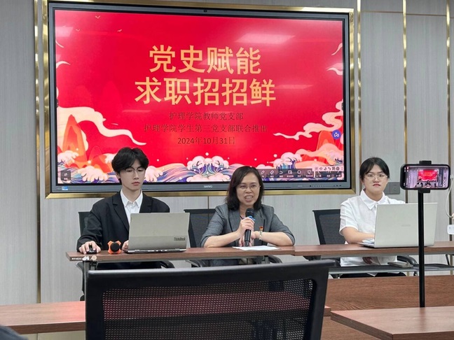 护理学院教师党支部积极完善就业困难学生帮扶体系,2024年陆续开展“党旗领航,精准帮扶”专场招聘会、“师生齐努力 共筑梦职场”就业帮扶会议、“党史赋能,求职招招鲜”直播等系列活动,精准指导就业,助力学生成长成才,有效提升培养质量和就业率。以黄上峰、陆青梅、麻新灵为代表的党员教师长期以来专注学生工作,主动对接困难学生,实施预警谈话制度,强化思想教育引导,以提升学生满意度为目标,深入了解学生困难和诉求、倾听学生意见和建议,提供细致的心理辅导,引领学生成长,广受学生好评,提升了师生获得感和幸福感。