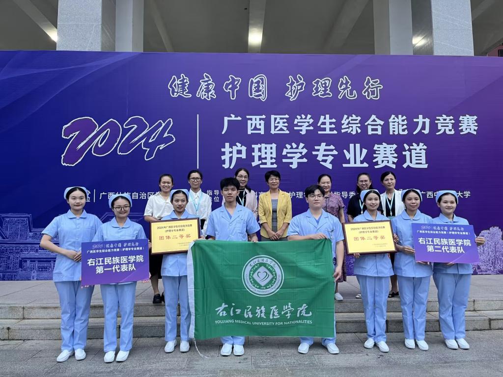 陆青梅、沈艳清两位党员教师,分别率领学生代表队参加2024年广西高校大学生医学技术技能大赛(护理学专业赛道),经过初赛和决赛的激烈角逐,两支代表队均荣获二等奖。