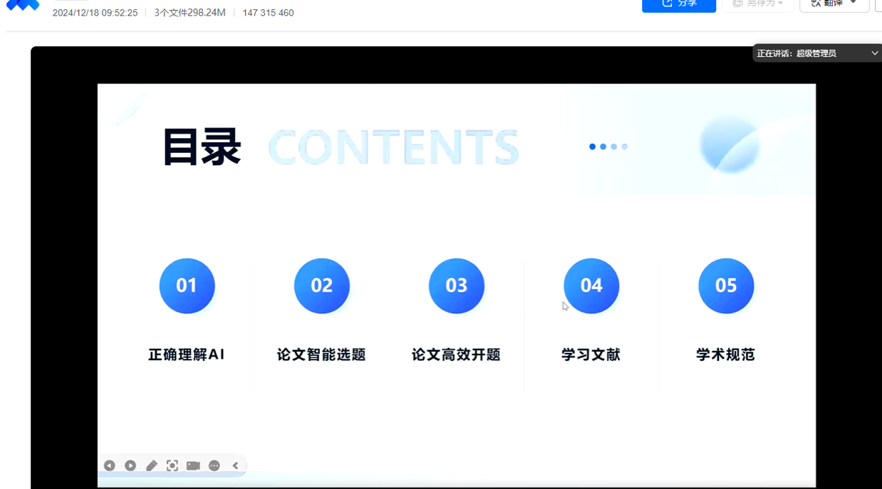 本次线上会议共有两场培训,分别是教师专场、学生专场。教师专场培训主要由系统平台技术员舒童工程师主讲。会上,舒童老师详细介绍了毕业论文管理系统的功能与操作流程,并针对不同角色老师在论文管理、论文指导中可能遇到的问题进行了深入解析,现场解答了老师们提出的各种疑问。学生专场培训首先由系统平台培训师肖丹老师讲授,她用生动的案例指导学生如何智能选题、精准把握研究方向的技巧,如何高效开题、检索文献、选择研究方法,强调了毕业论文格式规范、引用标准及学术诚信的重要性。随后,舒童老师向2025届的毕业生们展示了毕业论文管理系统学生端的各项功能,并通过实际操作演示,让学生们能够熟练地使用该系统来完成毕业论文的相关工作。