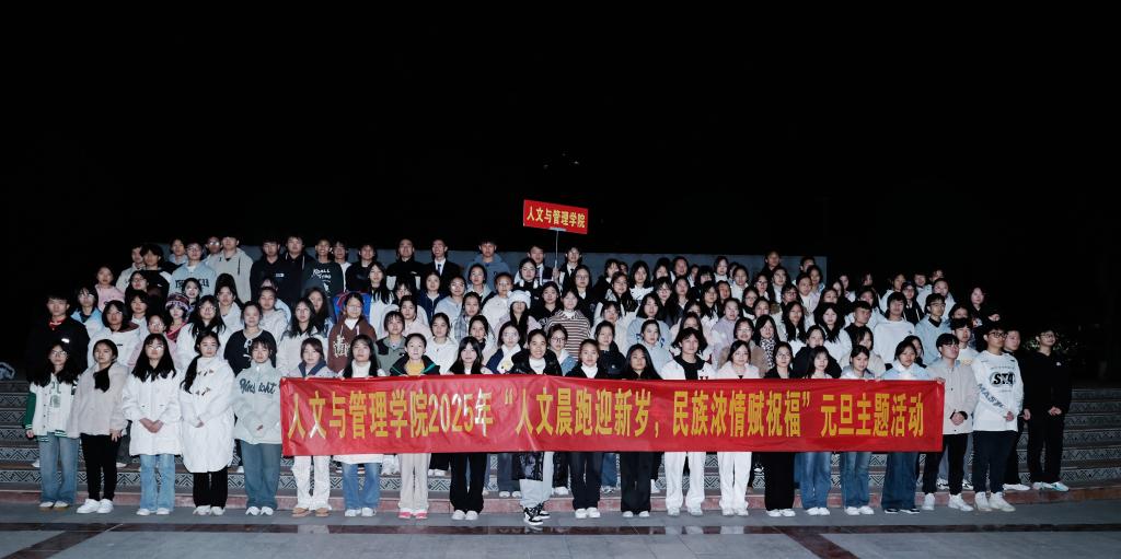 为加强民族团结,铸牢师生中华民族共同体意识,1月1日,人文与管理学院在百城校区开展“人文晨跑迎新岁,民族浓情赋祝福”主题晨跑活动。人文与管理学院院长助理、学生科副科长韦艳春老师,学生辅导员李森森和韦伊宁老师,各学生组织代表,学生党员代表,各班级学生代表共151人参加晨跑。