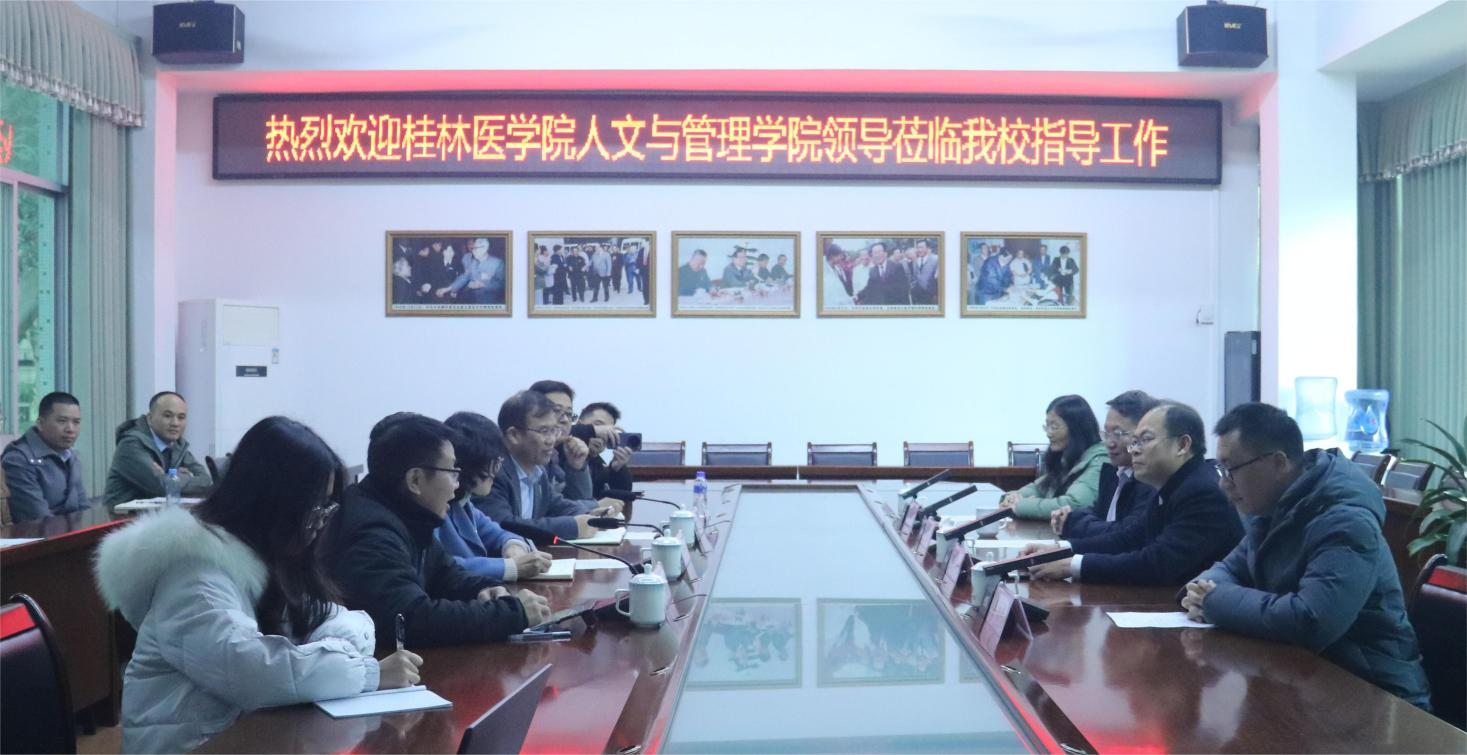 1月13日下午,桂林医学院人文与管理学院党委书记庞伟毅、院长石武祥一行4人到beat365考察交流。beat365党委常委、副校长周艳娥与人文与管理学院党委书记、院长李常应热情接待了来宾,并在图书馆二楼会议室召开交流座谈会。人文与管理学院部分教师代表及相关教学管理人员参加了座谈会。