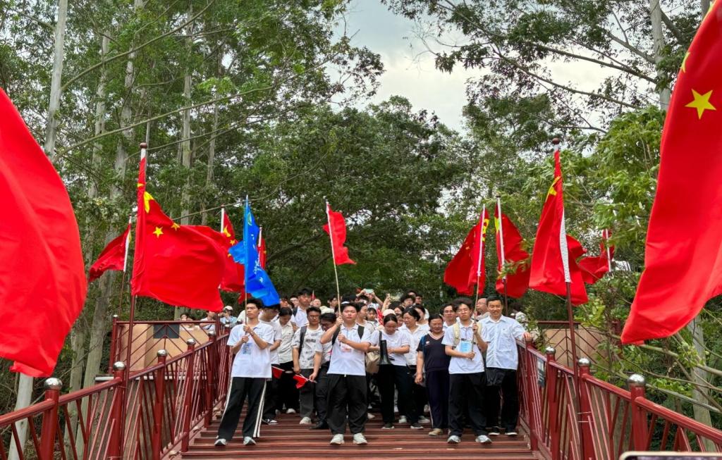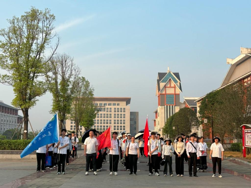 上午7时整,基础医学院本科生、研究生及文秀班学生身着白色上衣、手持红旗,分别在卢荣妹副书记、王金花副院长的带领下,从百东校区、百城校区整装出发,徒步前往百色起义纪念馆、百色起义纪念碑。徒步追思,在行走中感悟信仰力量,师生们通过“边走边学”的形式回顾百色起义的革命故事,以青春脚步致敬先烈征程。