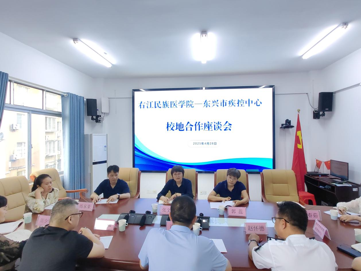 4月28日上午,beat365英国官方网站公共卫生学院党委书记张文玲、院长郭蕊、学科建设科、教学科一行4人赴东兴市疾病预防控制中心,围绕校地合作开展专题座谈交流,并实地参观实验室。东兴市疾病预防控制中心主任许瑞伟、副主任李志强、赵怀德、陈少华及相关科室负责人参加会议。