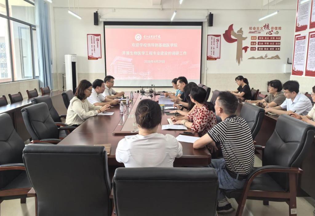 为深入推动学校学科专业建设,优化专业布局,加速基础医学院新增专业生物医学工程的建设进程,4月29日上午,王俊利副校长率领教务处、医学技术与人工智能学院等部门负责人,深入基础医学院开展生物医学工程新专业建设工作专题调研。基础医学院领导班子成员、教学科及相关科室负责人出席了此次调研会议。