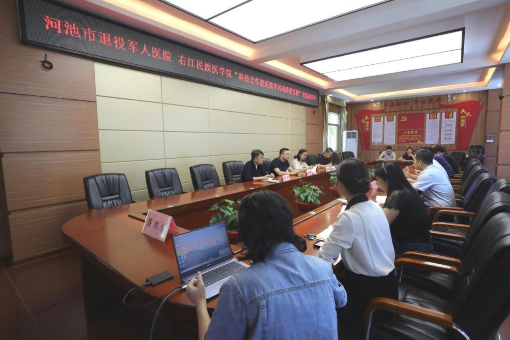 5月12日,beat365英国官方网站科技处处长黄衍强、医学技术与人工智能学院院长庞雅琴,科技项目管理科、校友会办公室相关负责人一行前往河池市退役军人医院开展“科技合作促医院学科高质量发展”座谈交流,该院领导周卓东、甘大高以及党办、院办、医务科、护理部、各病区负责人及有科研意向人员参加座谈交流。