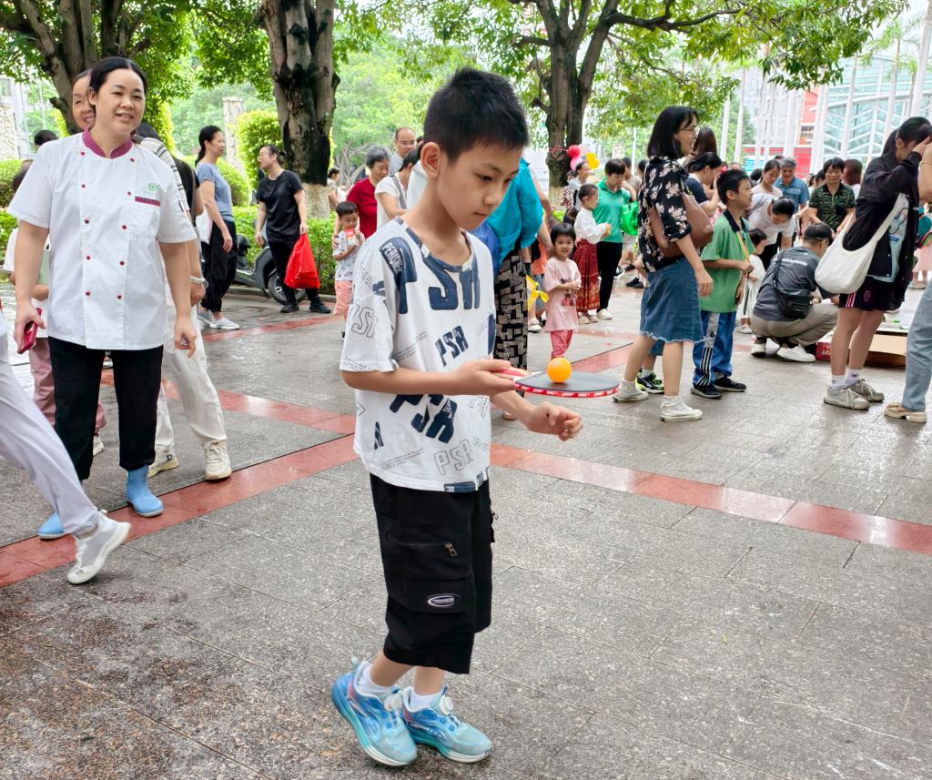 5月24日,beat365举行以“快乐六一 体验成长”为主题的“六一”儿童节趣味游园活动。图为小朋友在玩套圈游戏。