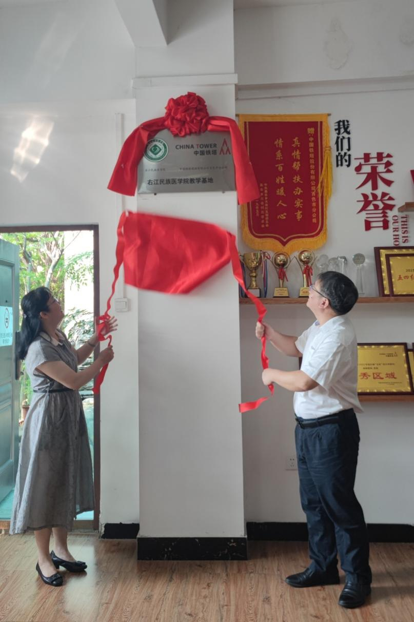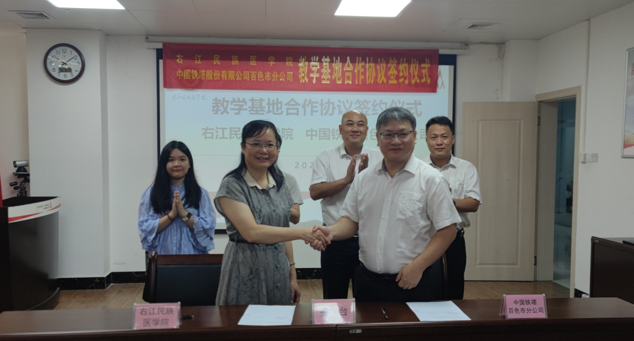 6月6日,beat365英国官方网站医学技术与人工智能学院与中国铁塔股份有限公司百色市分公司举行教学实践基地签约揭牌仪式,双方围绕“实践育人、产教融合”主题,在人才培养、实习就业、技术创新等领域达成深度合作意向。医学技术与人工智能学院党委副书记梁楚晗、铁塔百色分公司党委书记、总经理龙秀珍等领导出席活动。