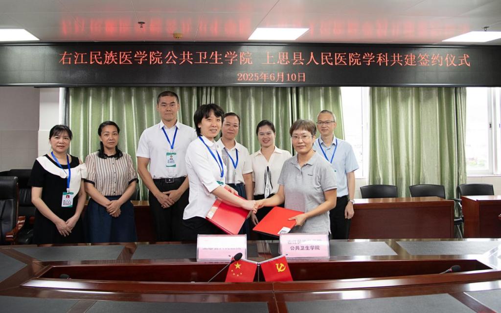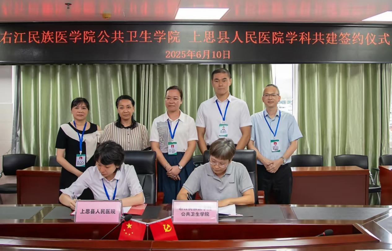6月10日,公共卫生学院与上思县人民医院学科共建合作协议签约仪式在上思县人民医院隆重举行。公共卫生学院院长郭蕊教授与上思县人民医院院长王浜琴共同签署了合作协议书,标志着校院合作迈入深度融合新阶段。