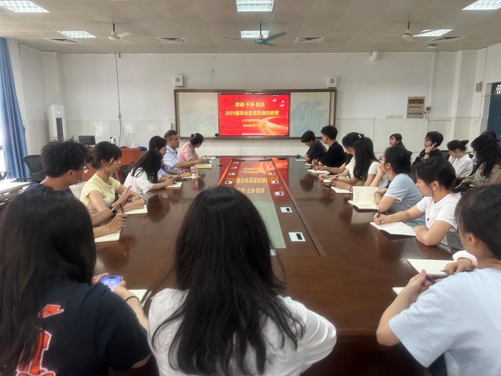 李常应通过剖析典型案例开展警示教育。他要求毕业生党员务必严守党纪党规,筑牢拒腐防变思想防线。他强调,“干净”是党员干部的立身之本,希望同学们在未来职场中始终保持清正廉洁,做到心有所畏、言有所戒、行有所止。毕业生党员彭亮在会上发言。他结合自身经历,表示将牢记“一名党员就是一面旗帜”,在升学、就业等新起点上发挥模范带头作用。承诺以担当精神服务社会,用实际行动彰显共产党员的先进性。