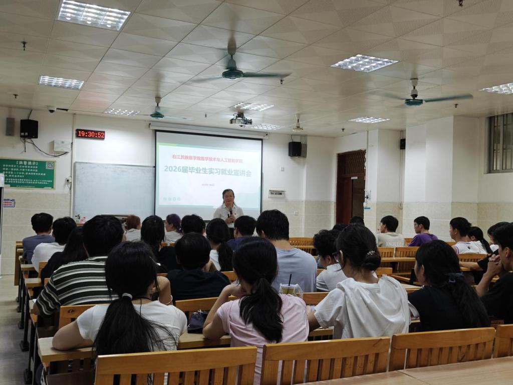 为积极响应国家关于促进高校毕业生高质量充分就业的政策要求,助力2026届毕业生提前做好实习与就业准备,7月8日至9日,医学技术与人工智能学院在学校7-108教室举办了实习就业宣讲会。2022级大数据管理与应用专业本科班、2023级医学检验技术专科班的120余名同学参加会议。