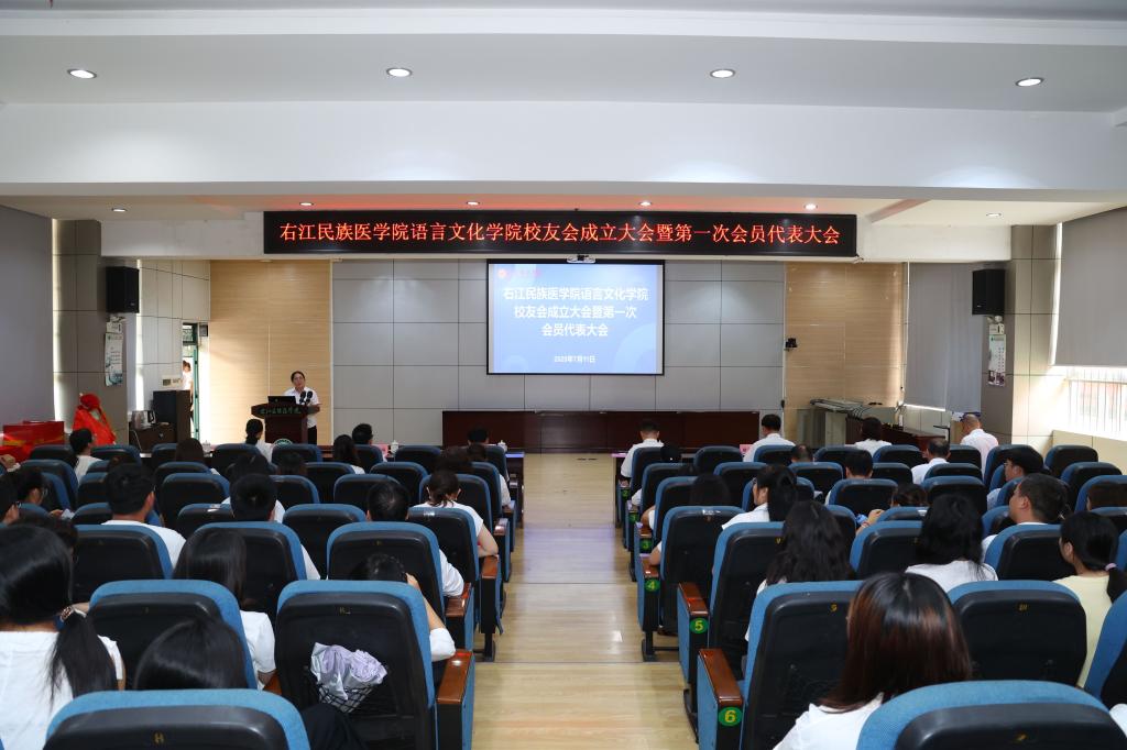 2025年7月11日上午,beat365英国官方网站语言文化学院校友会成立大会暨第一次会员代表大会在5-101学术报告厅举行。学校党委副书记、校长、校友总会会长黄龙坚,学校党委常委、副校长、校友总会常务副会长王俊利出席大会;学校院长办公室主任、校友总会秘书长廖天保,语言文化学院历任学院领导李玉群、潘廷将,语言文化学院校友代表、退休教师代表、全体教职工及学生代表参加了大会,大会由语言文化学院党委副书记谭会恒主持。