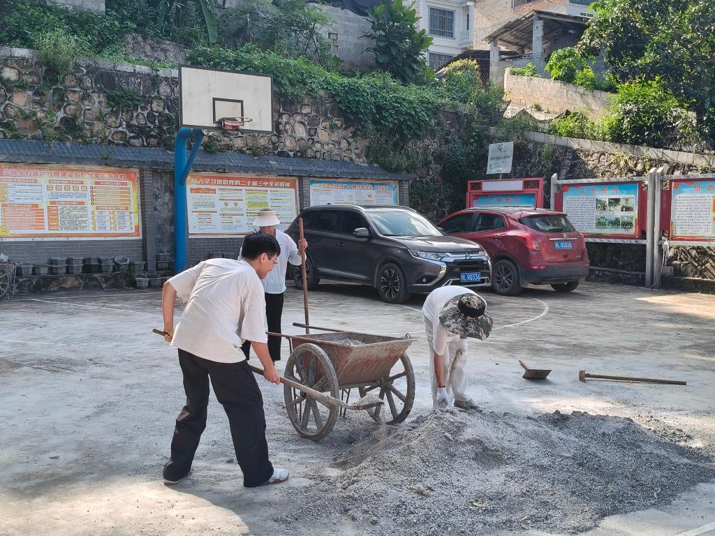 抵达新寨村后,志愿服务队首先与村“两委”干部一同行动,对村部会议室及周边公共区域进行了全面清扫,大家分工明确,有的清扫地面垃圾,有的擦拭门窗桌椅,有的整理杂物,共清理垃圾20余袋,整理杂物10余处,显著改善了村容村貌。这一行动不仅为后续活动打下了良好基础,也展现了干群同心、携手共建美丽乡村的温馨画面。