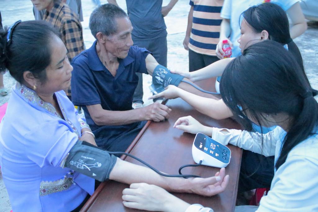 健康服务暖民心,专业护航保安康。实践团紧紧依托护理专业特长,于党群服务中心精心开展健康惠民行动,在陆美娇老师的指教下,为村民悉心提供血压监测、中医按摩等基础诊疗服务,并发放《慢性病防治手册》等宣传资料进行专业健康指导。其间,队员们尤其关注“一老一小”群体,细致为老年人开展健康评估,耐心向儿童传授基础急救技能;还积极投身村容环境整治,以实际行动倡导健康生活方式,有效提升了基层群众的健康素养与自我保健能力。