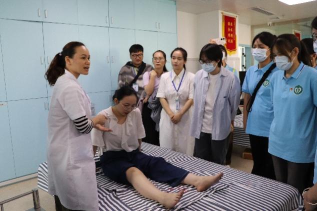 实践团围绕中医技法与用药等方面深入探究。在县医院团委老师的带领下,队员们实地走访康复理疗方面相关科室,进行一堂现场“见习课”,观看学习中医技法的临床应用,加深队员们对中医技法的认知。巴马县中医院壮医科黄琴老师也与队员们亲切交流,从壮医行医用药的角度扩充队员们知识面,促进文化传承实践教育与专业提升职业规划的双融合。