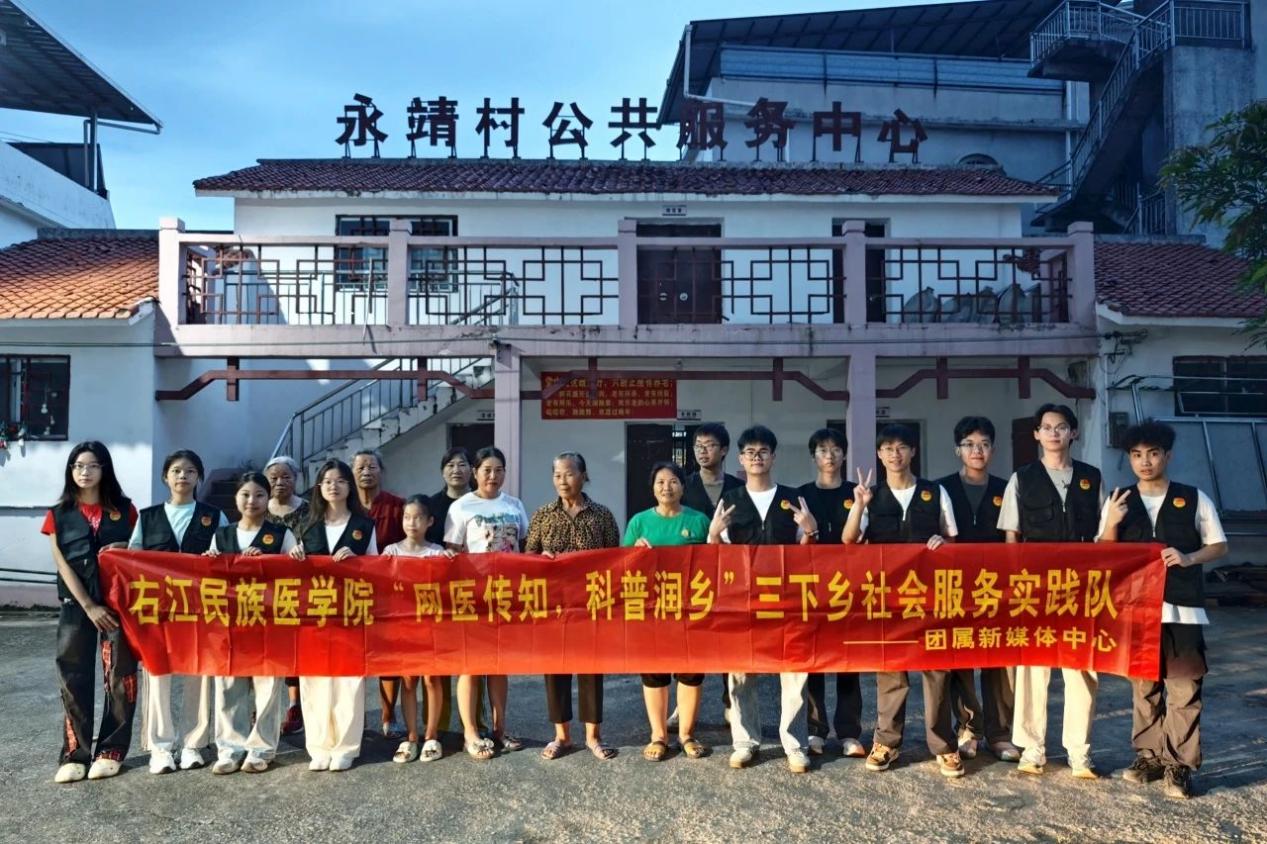为深入践行健康中国战略,铸牢中华民族共同体意识,近日,beat365英国官方网站“网医传知,科普润乡”社会实践团赴百色市右江区四塘镇永靖村外域屯,开展持续一周的2025年大学生暑期“三下乡”社会实践活动。实践团发挥医学专长,创新形式开展个性化健康服务,以实际行动服务乡村发展。