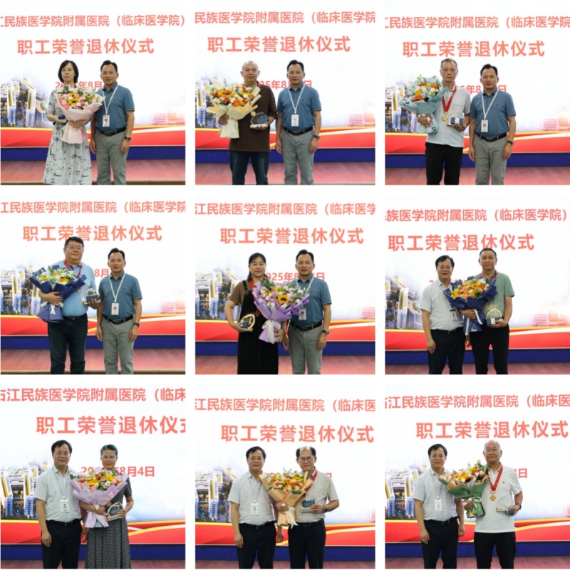 8月4日下午,临床医学院(附属医院)在总院区外科五楼大教室隆重举办了退休职工荣休仪式。临床医学院(附属医院)党委书记黄照河、院长韦忠恒、党委副书记许靖及相关职能部门负责人、退休职工及家属齐聚一堂,共同参加附院2025年下半年职工荣休欢送会,现场气氛温暖而感人。