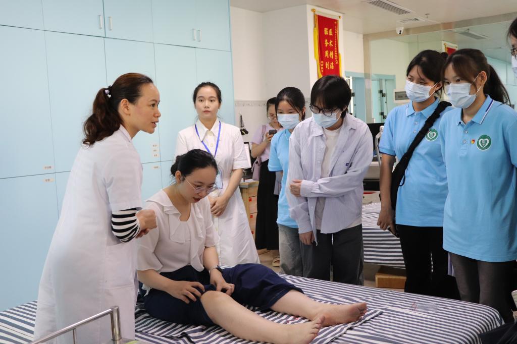 实践团化理论为实践,赴甲篆镇卫生院中医馆、县人民医院康复科进行中医技法学习,中医馆医生“手把手”指导队员定位穴位、练习推拿手法,并实地观摩康复理疗科室的针灸、推拿等技法。
