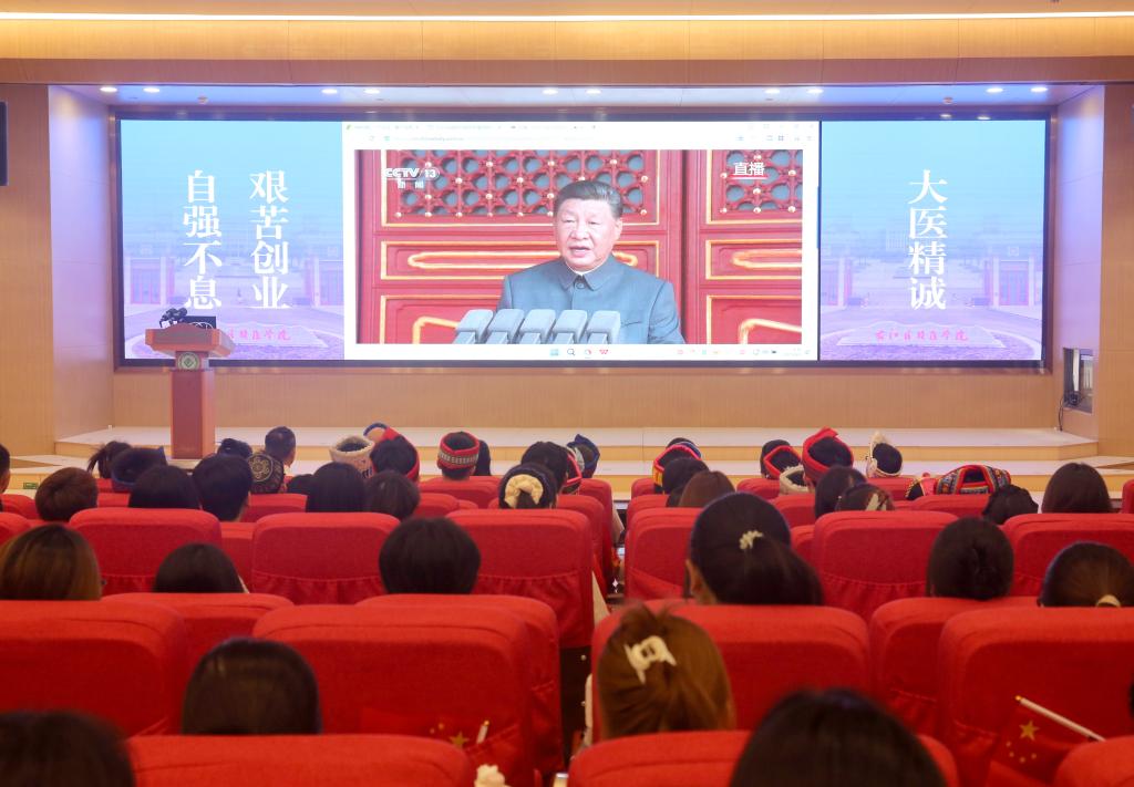 各民族师生认真聆听习近平总书记发表的重要讲话
