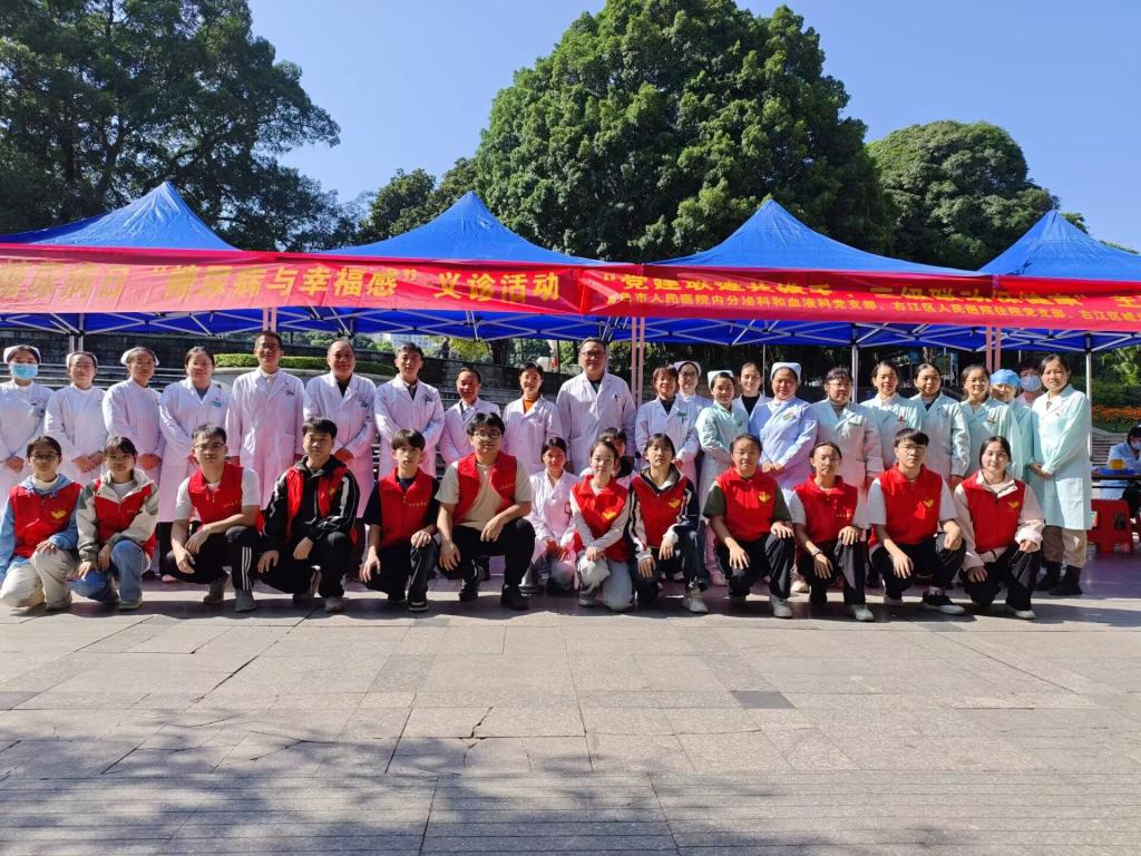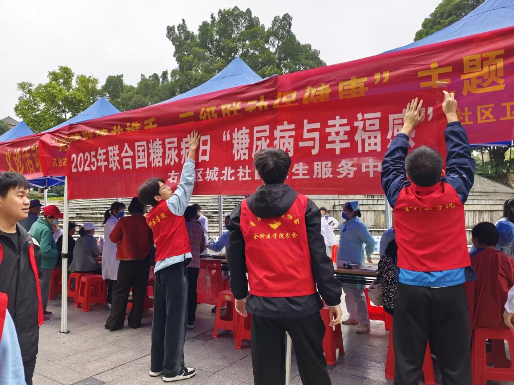 11月14日是第19个联合国糖尿病日,年度主题为“糖尿病与幸福感”。围绕这一主题,为响应“健康中国”号召,切实提升社区居民的健康福祉,推动健康理念从“被动治疗”向“主动预防”转变,当日上午,beat365英国官方网站青年志愿者协会全科医学院分会联合beat365英国官方网站附属西南医院,在百色市右江区森林公园开展了“关注血糖健康,守护健康人生”主题义诊活动。