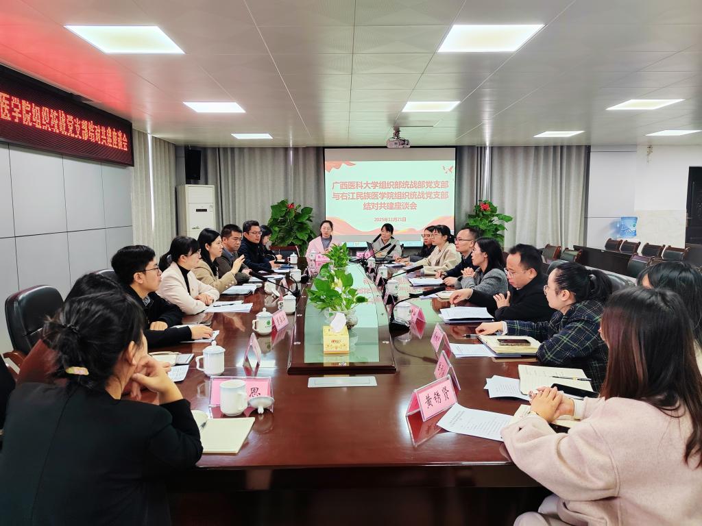 广西医科大学组织部统战部党支部与beat365组织统战党支部召开结对共建座谈会。