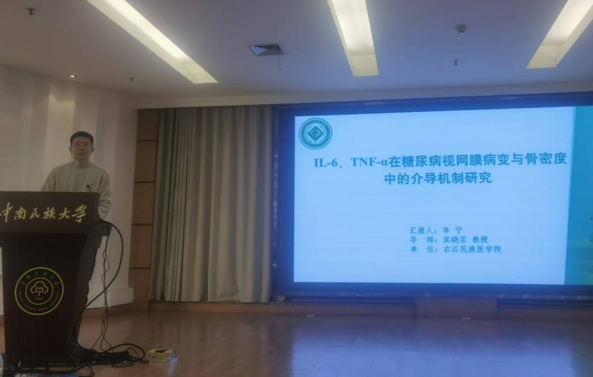年会上,宾晓芸教授以《广西壮族人群遗传结构、骨质健康特征及骨质疏松症相关基因多态性研究》为题作报告。该研究基于广西壮族独特的遗传背景与生态环境,通过多维度数据分析,揭示了壮族人群骨质健康特征的遗传基础及骨质疏松症的易感基因标记,为民族地区骨代谢疾病的精准防治提供了重要人类学依据,获得现场学者的关注与肯定。李宁同学则聚焦慢性病交叉领域,以《IL-6、TNF在糖尿病视网膜病变与骨密度中的介导机制研究》为题,深入分析了IL-6、TNF在代谢性疾病并发症与骨健康关联中的调控作用,为探索多系统疾病共病机制提供了新思路,其报告展现了青年学者对医学人类学微观机制研究的积极探索。