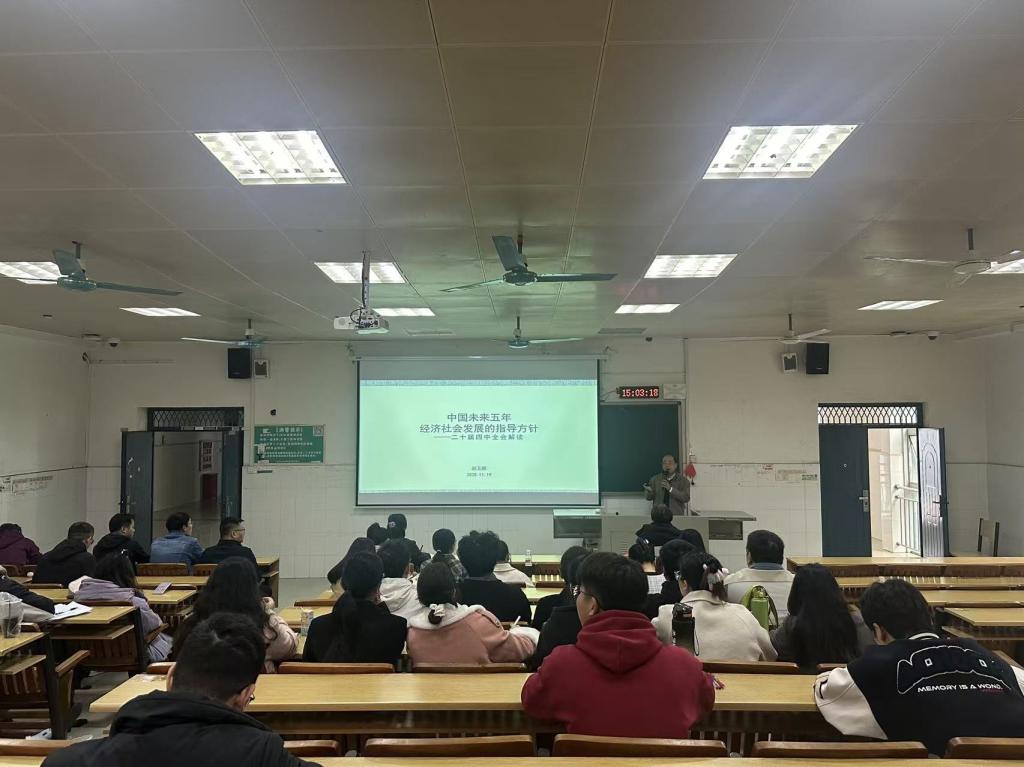 报告会上,赵玉鹏教授系统解读了党的二十届四中全会精神,重点围绕全会审议通过的《中共中央关于制定国民经济和社会发展第十五个五年规划的建议》展开,深入阐述了“十五五”时期经济社会发展的指导思想、主要目标和重点任务,以及如何以中国式现代化全面推进中华民族伟大复兴的深刻内涵。