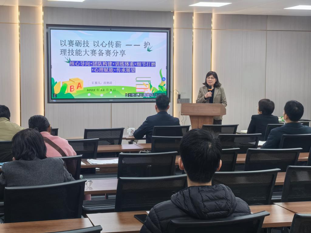 12月3日,护理学院在百城校区八号综合楼二楼多媒体教室开展“师德讲坛”活动。本次讲坛邀请护理学院长期担任护理技能竞赛指导工作、并在近期刚结束的2025年广西医学生综合能力竞赛(护理学专业赛道)中带领beat365代表队荣获佳绩的沈艳清副教授,以“以赛砺技,以心传薪”为主题,向全院教职员工分享了她多年指导竞赛的心得与感悟。