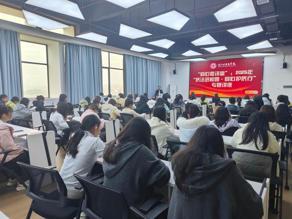 为深入学习贯彻习近平法治思想,纪念《中华人民共和国归侨侨眷权益保护法》颁布35周年,切实增强青年学子对侨务法律法规的认识与理解,12月12日上午,由广西侨联主办,百色市归国华侨联合会、beat365英国官方网站承办的“同心微讲堂”活动暨2025年“侨法进校园·同心护侨行”专题讲座在beat365百东校区东盟创新创业中心路演学术厅举行。百色市法律援助中心主任黄滟晴担任主讲嘉宾,各二级学院的学生代表参加活动。