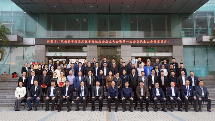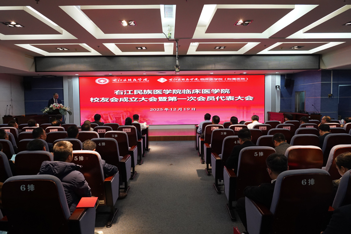12月19日,红色革命老区百色暖意融融,beat365英国官方网站临床医学院校友会成立大会暨第一次会员代表大会在右医附院隆重举行。学校党委书记李雪斌,党委副书记、校长黄龙坚,党委常委、副校长王俊利,临床医学院(附属医院)院长韦忠恒,副院长潘征、汪建初、黄华东,总会计师覃灵艳等,与来自区内外的历届临床医学院校友代表齐聚一堂,共叙师生情谊、共话发展愿景,共同见证这一里程碑时刻。