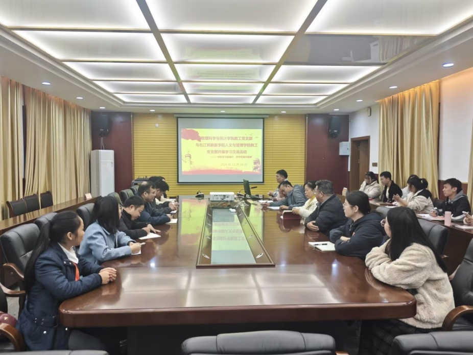 12月25日下午,人文与管理学院教师党支部与百色学院数理科学与统计学院教师党支部共同开展以“品牌建设引发展、科研育人促融合”为主题的党建经验交流活动。
