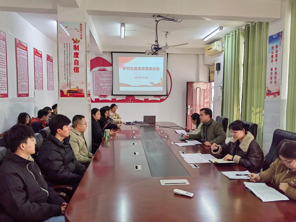 为深入推进基础医学课程体系建设,提升研究生培养质量,倾听学生心声,1月8日至15日,研究生学院分四次召开2025级基础医学研究生课程改革座谈会。研究生学院院长、党委研究生工作部部长莫小强,与来自基础医学院人体解剖与组织胚胎学、免疫学、病原生物学、病理学与病理生理学四个专业方向的2025级研究生进行了深入交流。党委研究生工作部副部长陈晓兰,研究生培养科相关工作人员一同参会。