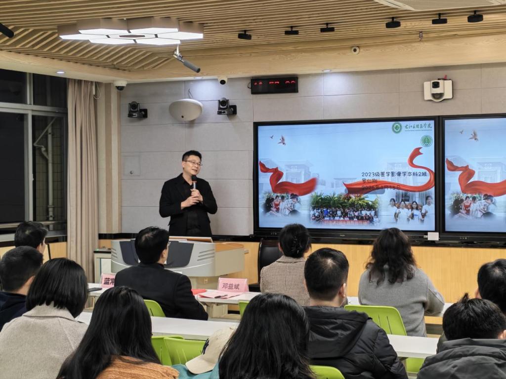 为深入贯彻落实全国教育大会精神,扎实推进立德树人根本任务,进一步加强班主任队伍建设,全面提升育人工作专业化水平,1月15日晚,医学影像学院在7栋智慧教室举办第一期“红影育人”班主任能力提升沙龙。学院党政领导班子全体成员、院长助理、各教研室主任、班主任及辅导员齐聚一堂,共话育人之道、共商提质之策。