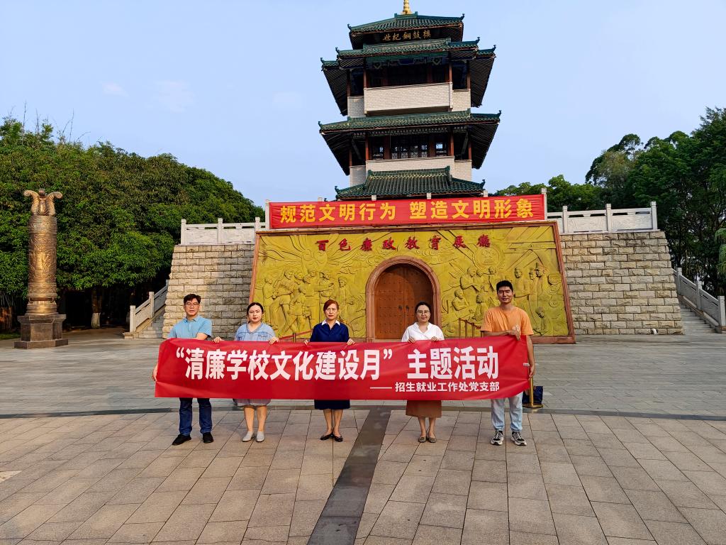 2022年9月21日下午,招生就业工作处在校内校外开展了“清廉学校文化建设月”主题活动,全体人员参加。此次活动共分为三个板块,分别是党支部书记讲廉政党课、廉政谈话和实地参观廉政教育基地。
