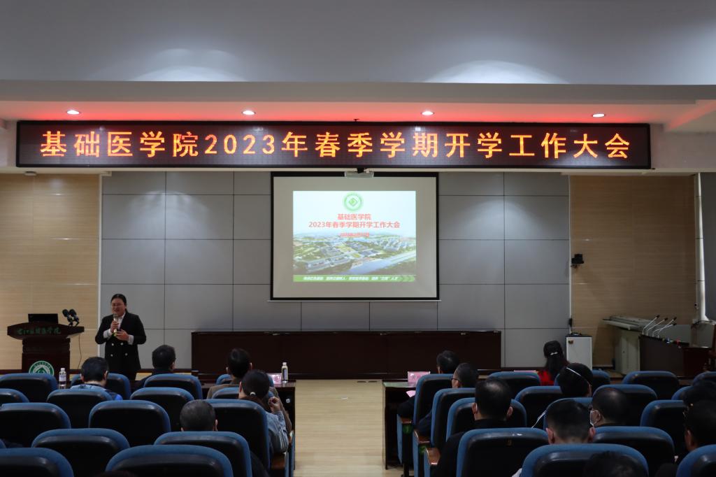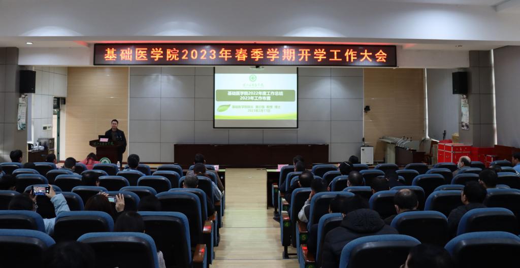 2023年2月17日,基础医学院于5栋101会议室召开2023年春季学期开学工作大会,基础医学院领导班子及全体教职员工参加了会议,会议由基础医学院副院长王金花教授主持。