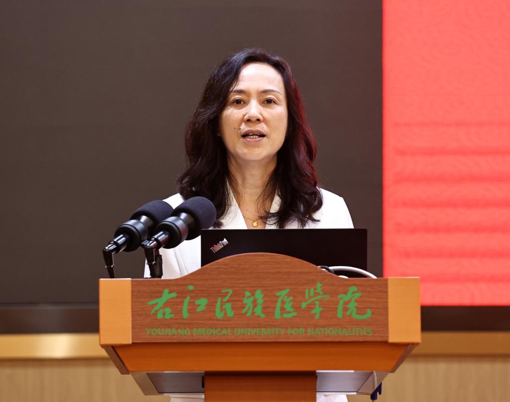 邓砚书记在大会上发表讲话,她首先代表学校新一届领导班子,向受表彰的先进集体和先进个人致以热烈的祝贺,向今年beat365获得“光荣在党50年”纪念章的老党员,以及辛勤工作在教学、科研、管理、医疗、服务等岗位上的全体师生员工表示衷心的感谢和崇高的敬意,向全体党员致以节日的问候。