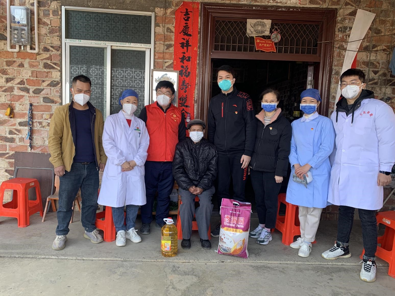 同时,党员同志针对汪乡村留守老人及儿童等特殊群体进行走访排摸,主动上门慰问,细致检查他们的身体状况,并送上米、油、书包、文具等慰问品,叮嘱他们有任何困难都可以寻求党组织帮忙。