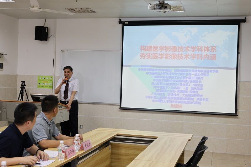 7月25日下午,医学技术与人工智能学院召开医学技术-医学影像技术方向人才培养与学科建设研讨会,旨在深化医教协同,推动医学技术——医学影像技术学科高质量发展,培养适应行业需求的高质量影像技术人才。此次研讨会特邀华中科技大学附属协和医院余建明教授主讲,医学技术与人工智能学院院长庞雅琴教授主持并致欢迎词。出席研讨会的还有医学技术与人工智能学院副院长宗子傲,医学影像技术本科专业负责人李保生,教师代表,学生代表共计50余人。