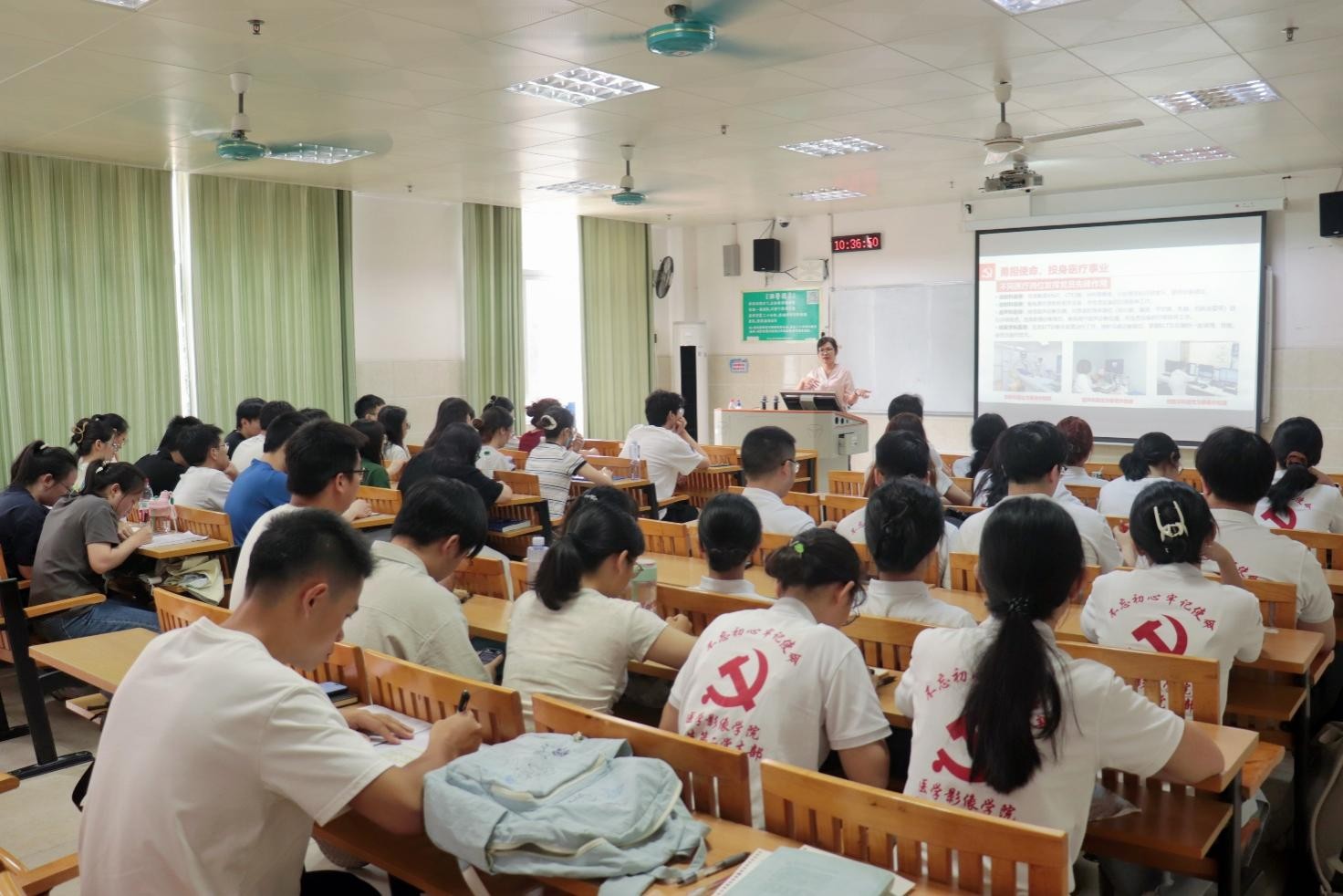 为做好毕业生党员离校前的教育管理工作,切实增强毕业生党员的党性修养和党员意识,助力他们以正确姿态投身社会、服务国家, 6月13日上午,医学影像学院在百城校区7205教室精心组织开展了2025届毕业生党员“毕业前的一次党课”。此次党课由医学影像学院党委书记李丹主讲,全体毕业生党员齐聚一堂,共同聆听这堂意义非凡的“最后一堂党课”。